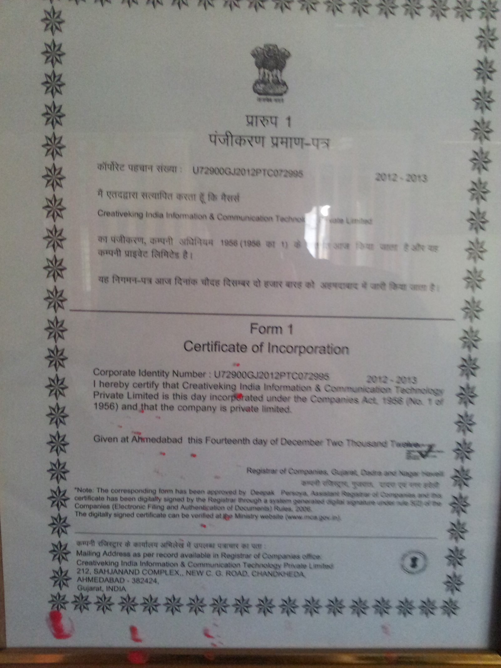 CK-IICT is incorporated under the MCA Legislative Act 1956(No.1 of 1956) of the Government of India. [Download Certificate]